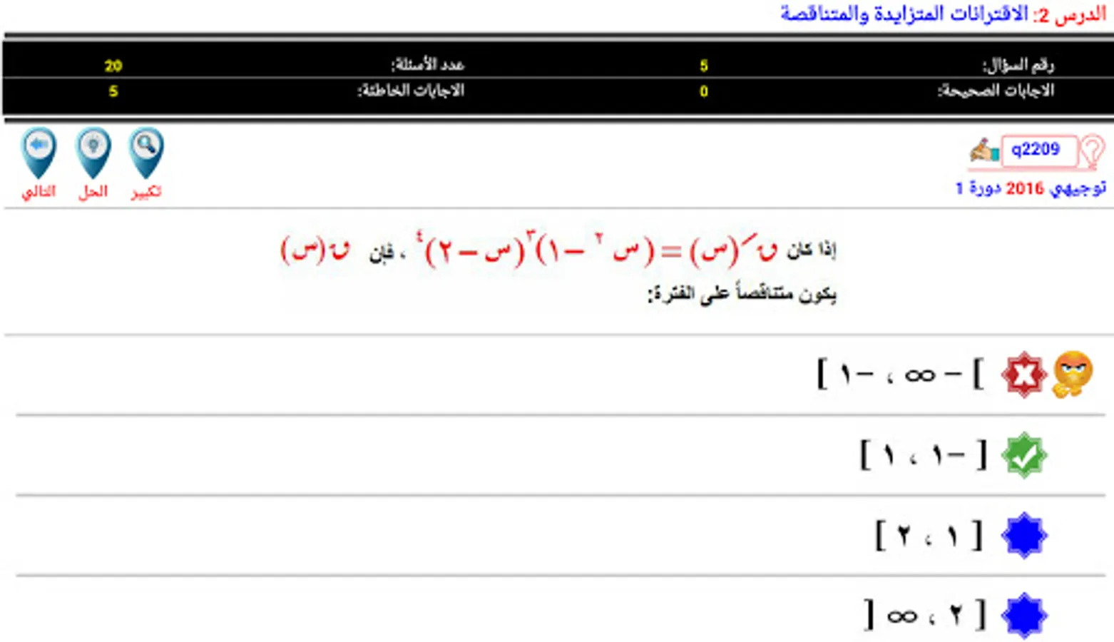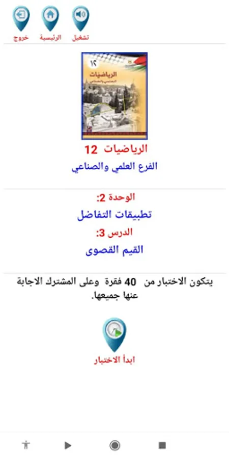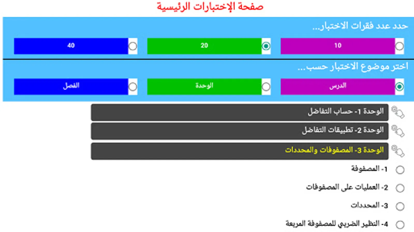 The professional in mathematics is the first application of the professional series in electronic tests, and it is considered the largest smart electronic application at all in the twelfth grade (tawjihi) scientific and industrial mathematics topic. The application works in the Android environment, and is characterized by the diversity of ideas and the multiplicity of questions. The application contains more than 1000 questions from the previous years' questions in Palestine and Jordan (ministerial, experimental, external) of the multiple choice type, with detailed steps to solve the question step by step. The contents have been reviewed, edited, and revised by distinguished teachers and dedicated moderators.