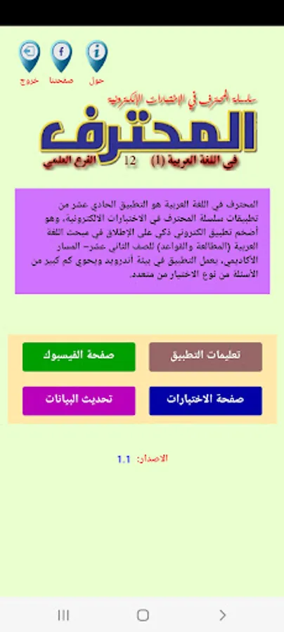 The Professional in the Arabic Language is the eleventh application of the Professional Series applications in electronic tests, and it is the largest smart electronic application ever in the subject of the Arabic language (reading and grammar) for the twelfth grade - the academic track. The application works in the Android environment and contains a large number of questions of the type Multiple choice.