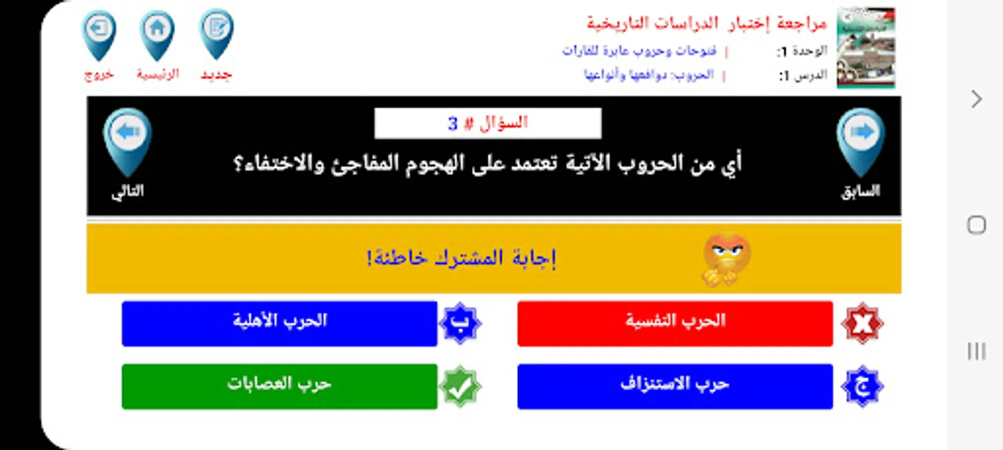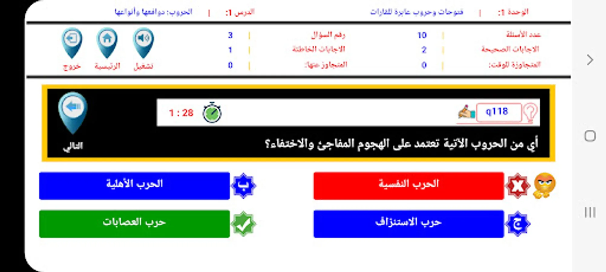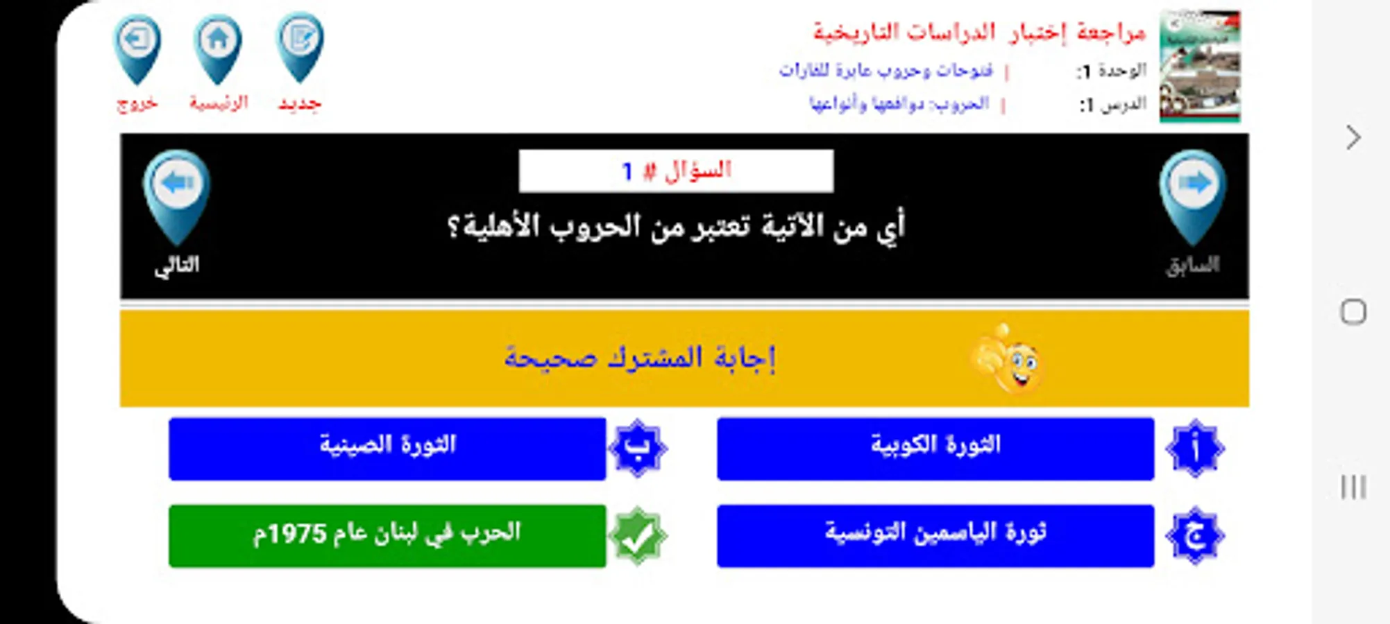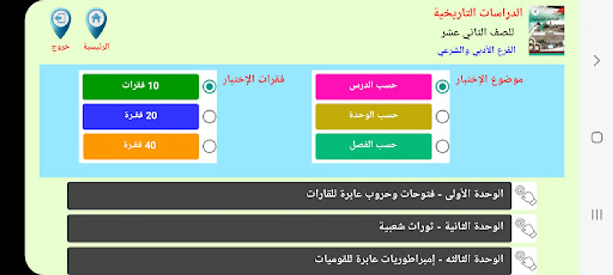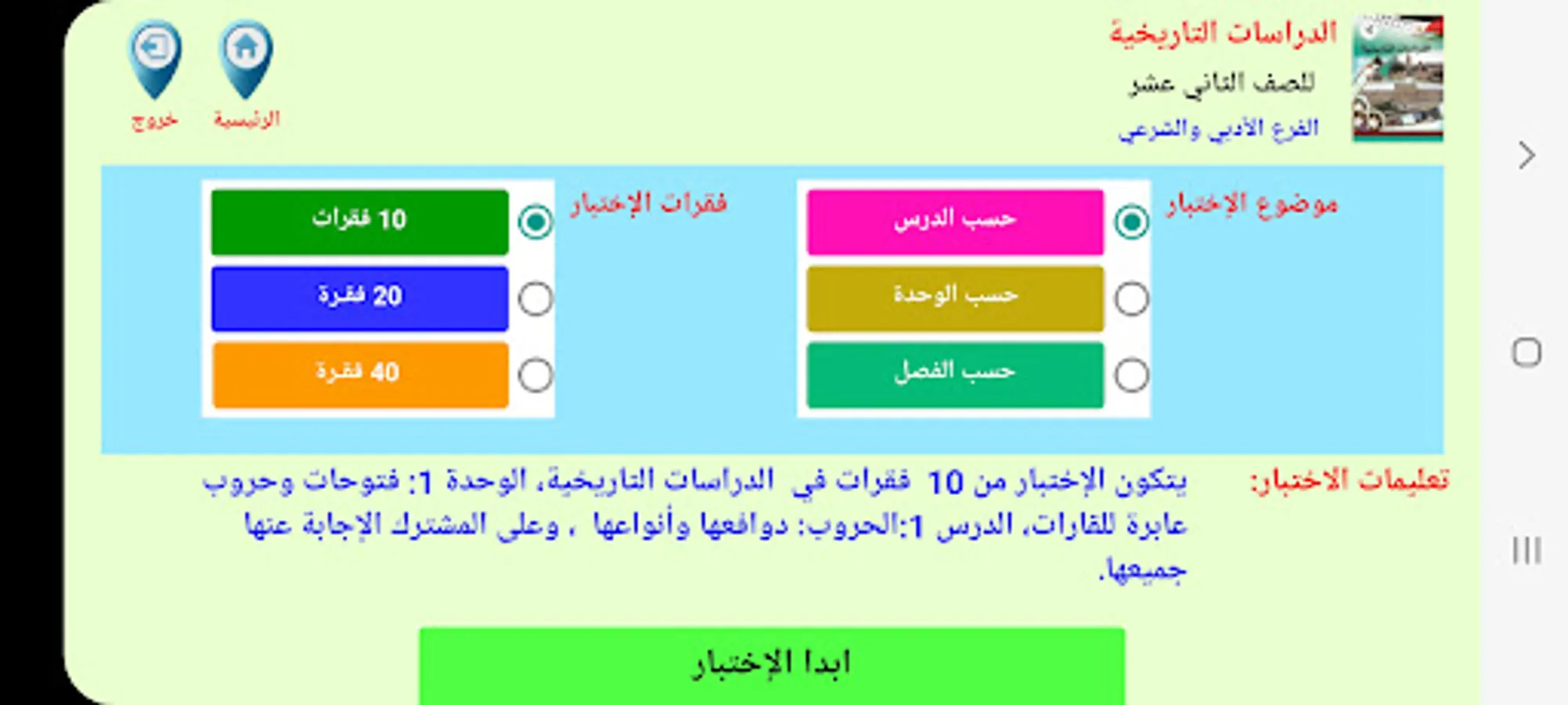 The Professional in History is the sixth application of the Professional series in electronic tests, and it is the largest smart electronic application ever in historical studies for the twelfth grade of literature - Palestine Tawjihi. The application works in the Android environment and contains a large number of multiple-choice questions.