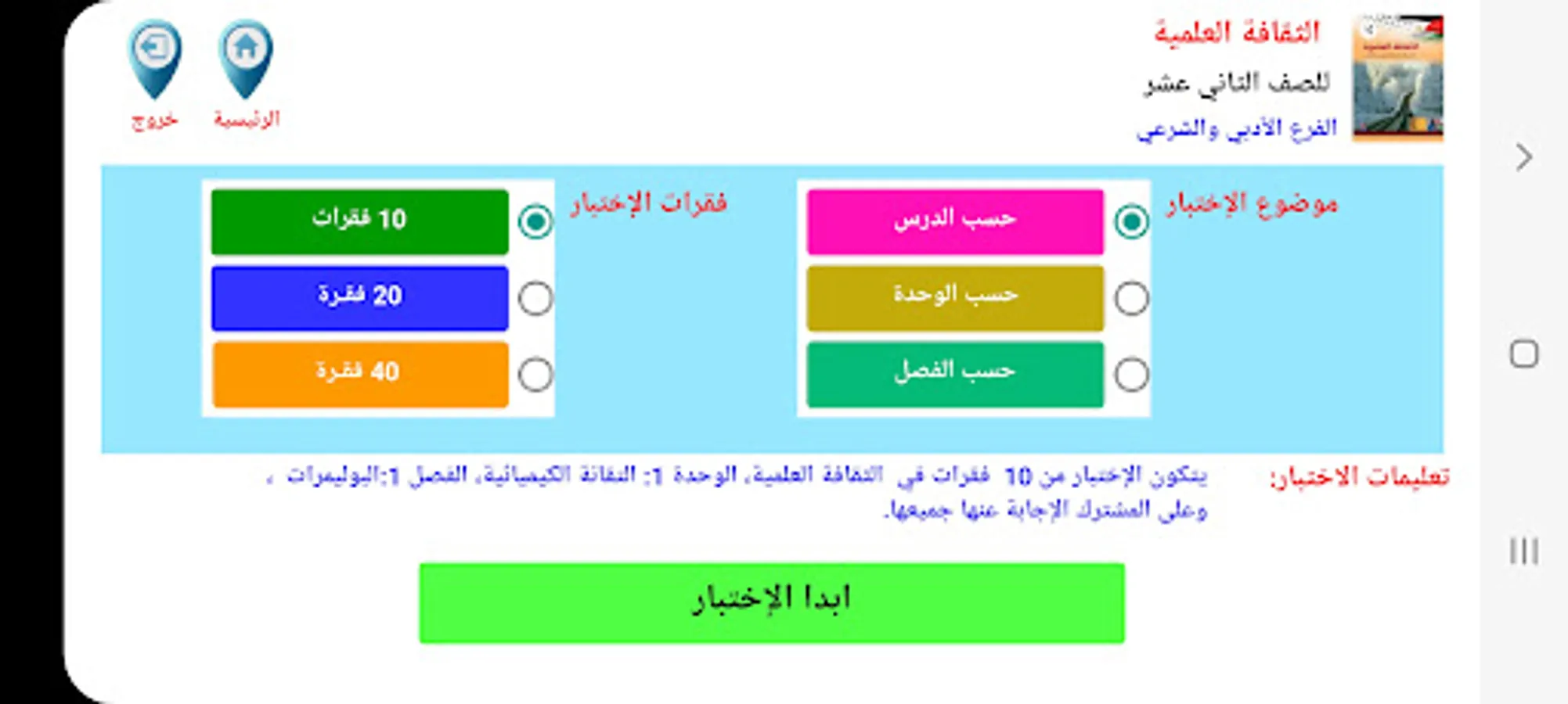 The professional in scientific culture is the seventh application of the professional series in electronic tests, and it is the largest smart electronic application ever in the subject of scientific culture for the twelfth grade of literary and Islamic law - Tawjihi Palestine. The application works in the Android environment and contains a large number of questions of the type of choice Multiple.