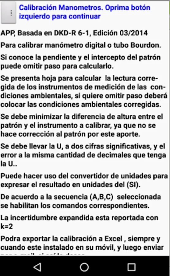 App designed to calibrate analog and digital manometers according to the guidelines of DKD-R 6-1, Edition 03/2014.