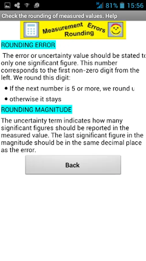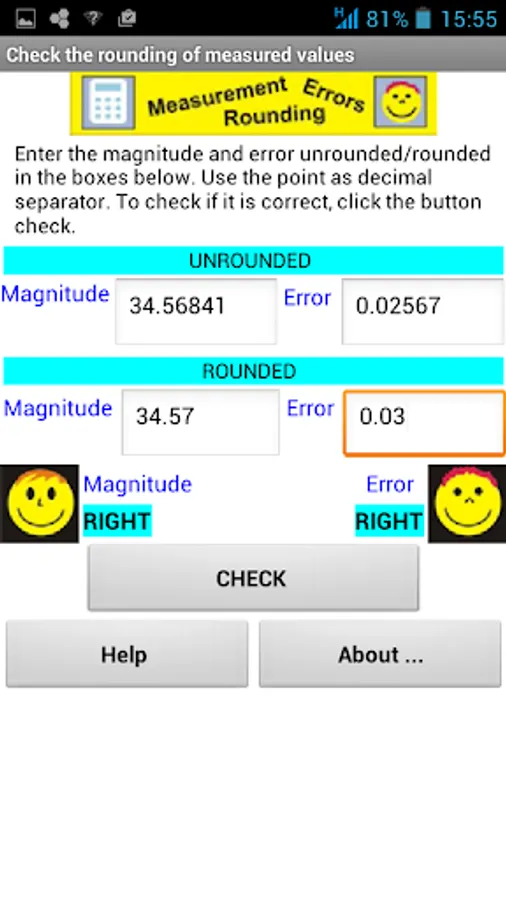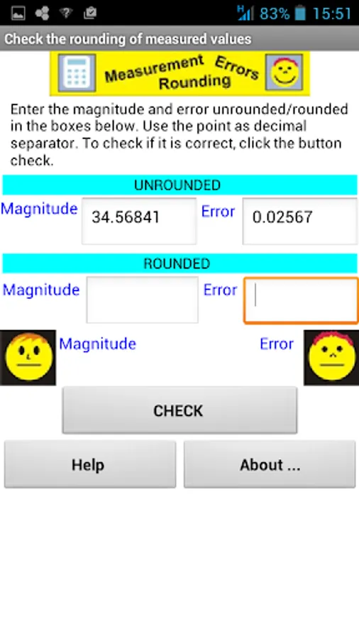 This application is used to check the rounding of a mesured value by using the error or uncertainty value. In particular, it is intended for use in educational laboratory experiments where students perform measurements and have to correctly express their measured values. Therefore, the application can help them to verify their results. Here we describe its use.