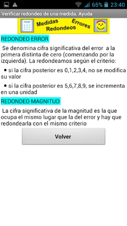 This application is used to check whether we have correctly expressed its magnitude measured with error. In particular, it is intended for use in laboratory experiments where students perform educational measures and finally express their correctly rounded results. Therefore, the application can help them verify their results. Here we describe its use.