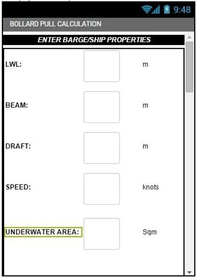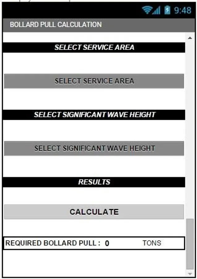 This app simply calculates your bollard pull need to pull a ship or barge under specified circumstances. Program is easy to use and simple to understand.