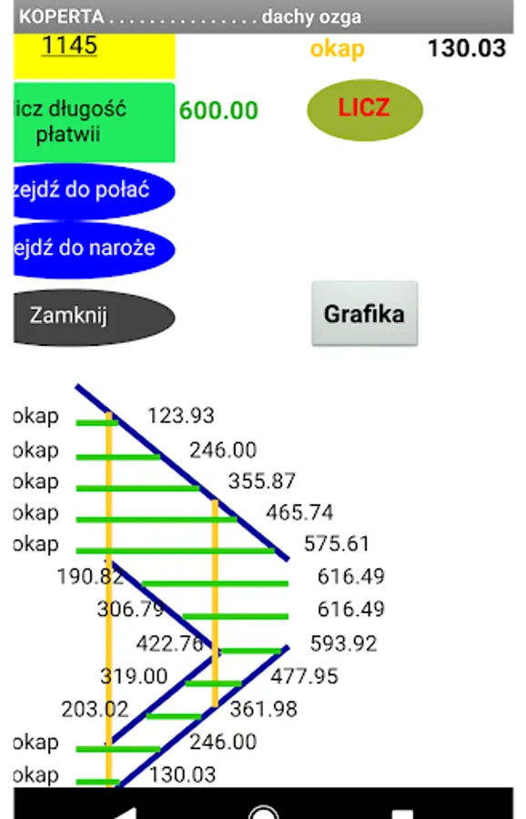 In this way, by entering the distance of the ball rafter from the base, i.e. the corner of the roof (from the design or from nature), the calculator will calculate the place of cuts for the list of elements.