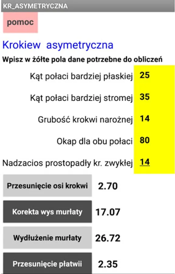 For more advanced users, if you need to trace an asymmetric rafter, the application will provide data for its drawing.