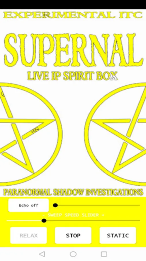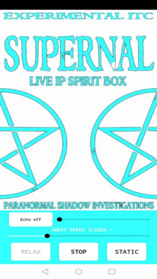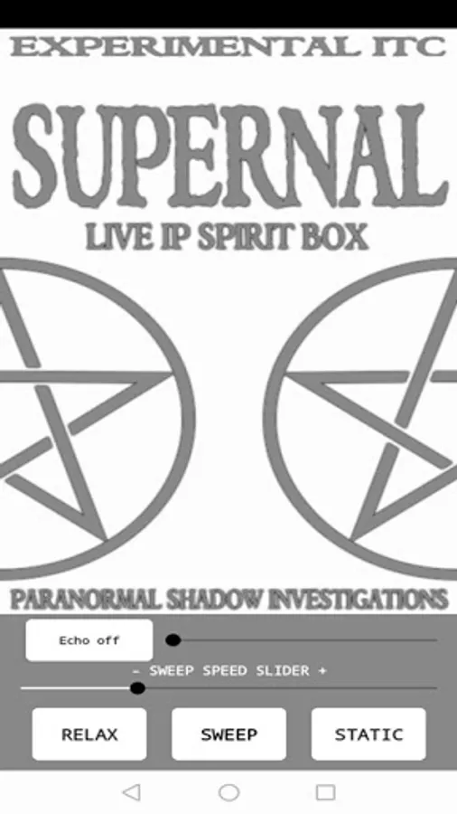 Supernal Spirit Box is an experimental ITC app that uses live IP stations with additional static background & option to 3 minute meditation before each session.