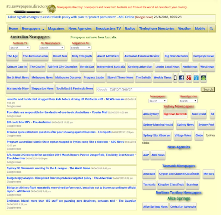 Newspapers, magazines and news from Canberra, Adelaide, Sydney, New South Wales, Capital Territory, Queensland, Northern Territory, Tasmania, South Australia, Western Australia and Victoria