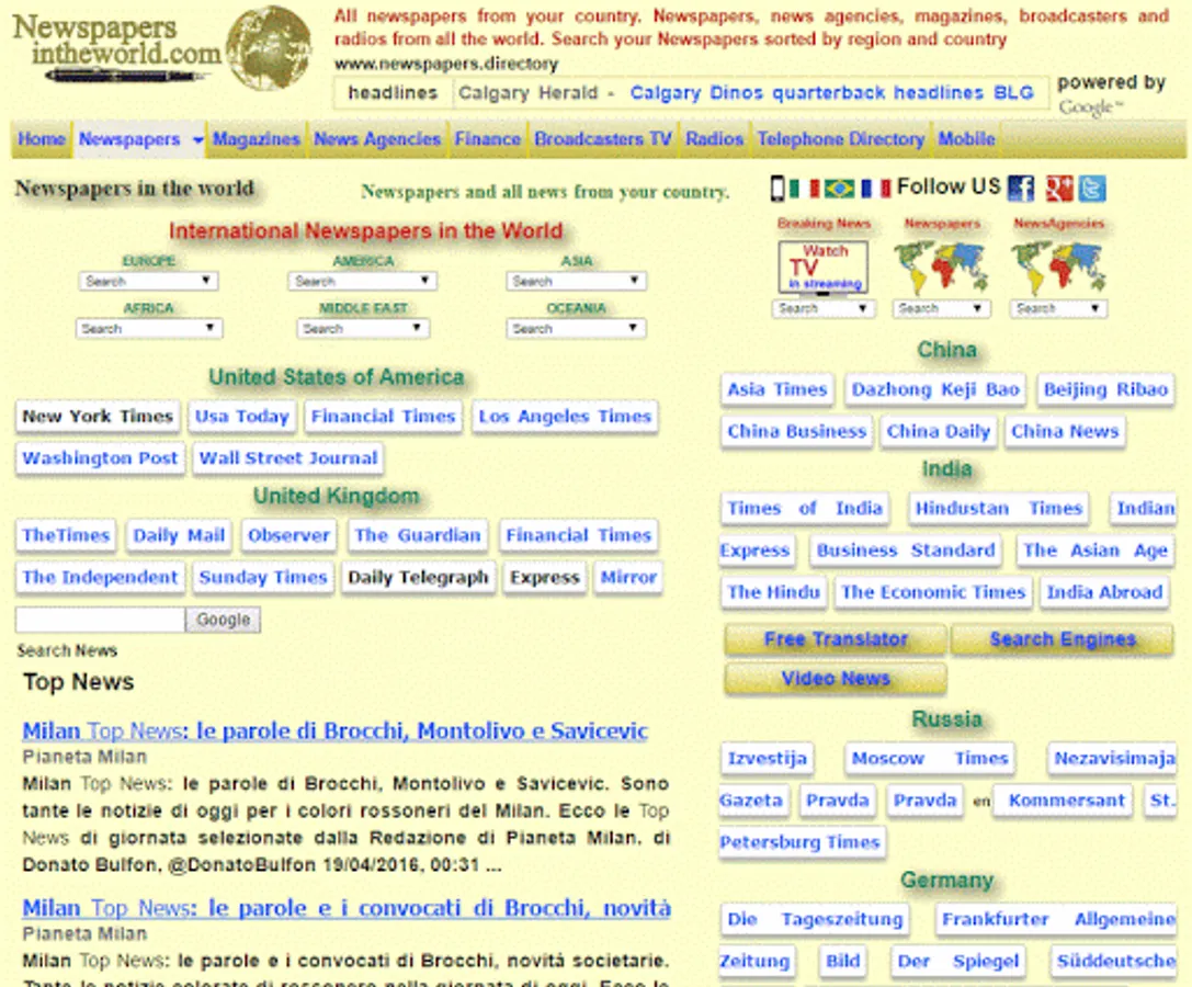 All newspapers from your country. Newspapers, news agencies, magazines, broadcasters and radios from all the world. Search your Newspapers sorted by region and country