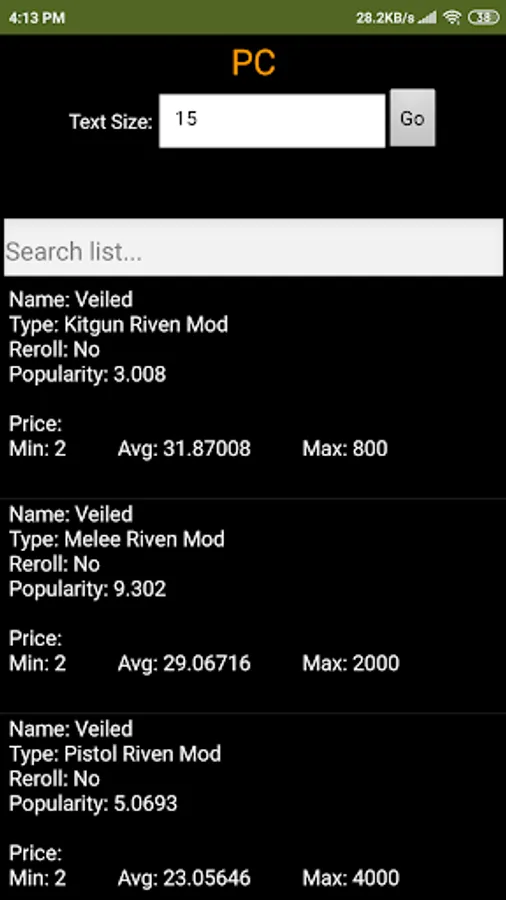 Riven Trade Info Contains actual trade data for riven mods Provided by Digital Extremes.