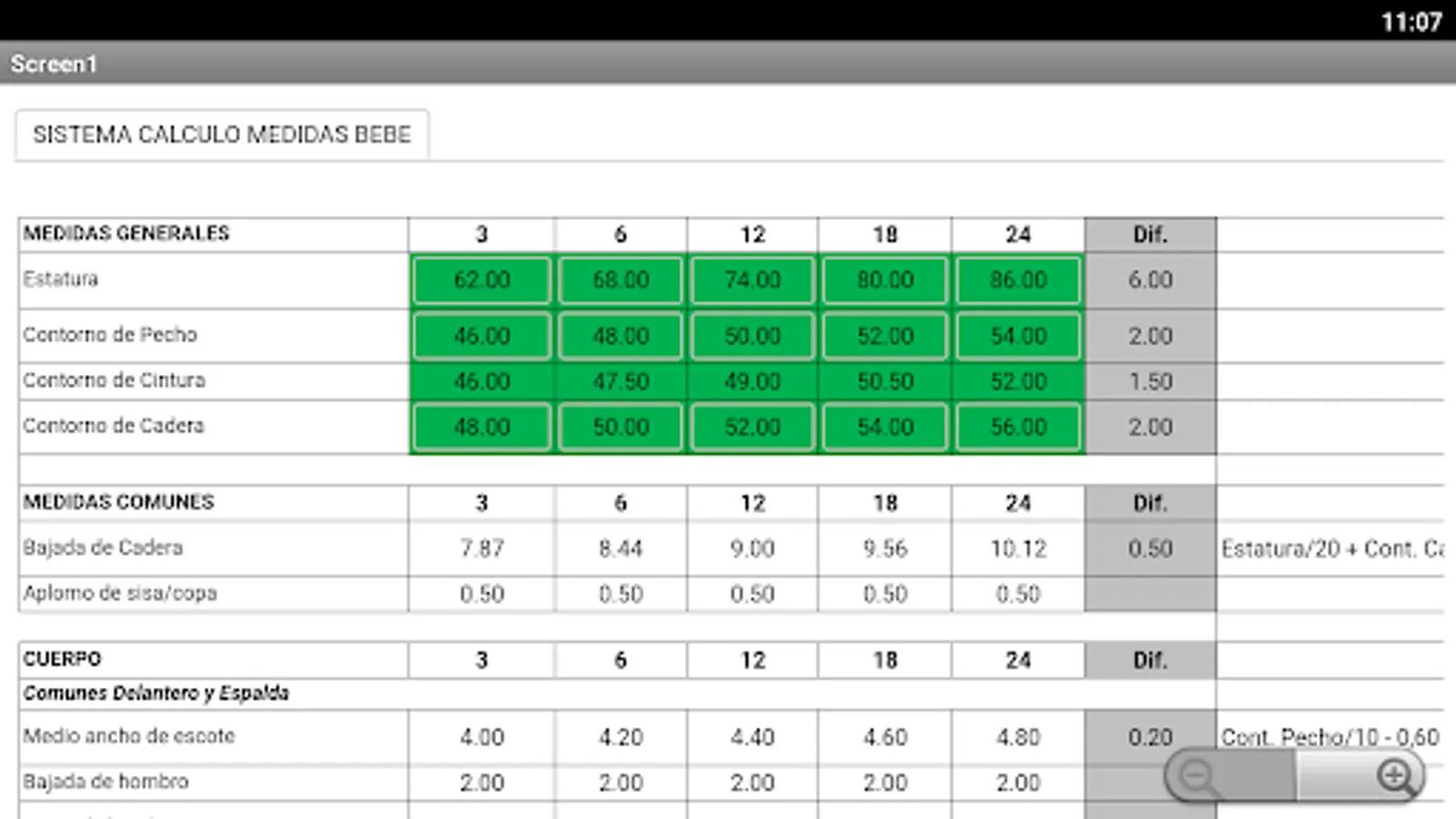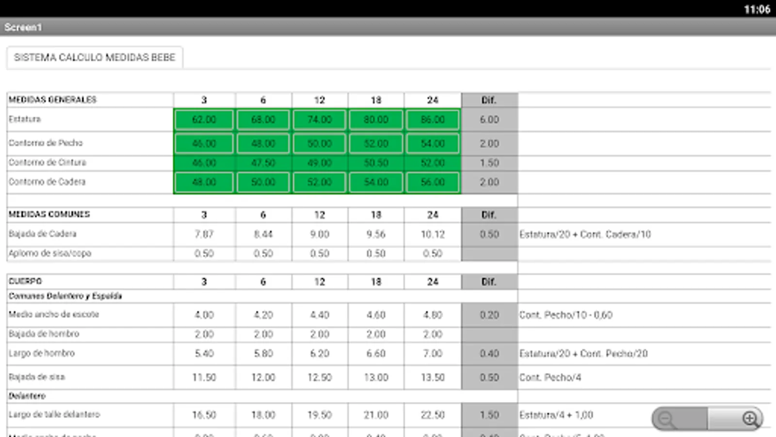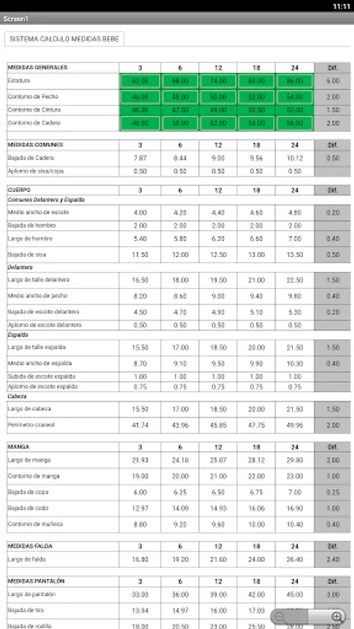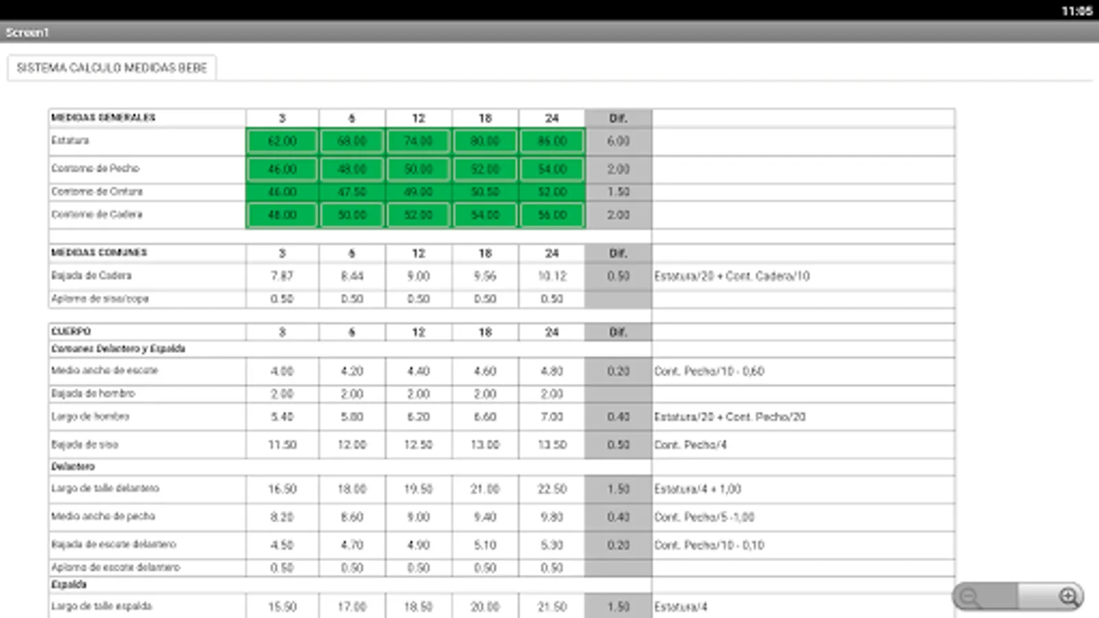 The system calculates all the measurements necessary to build the baby base patterns from four basic measurements that the user must always establish: height, chest, waist and hip contour.