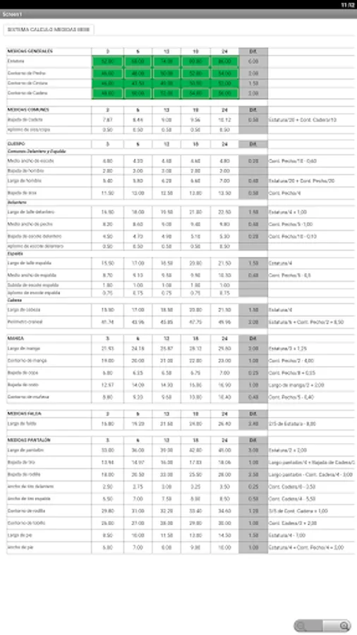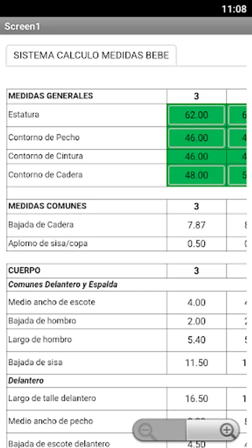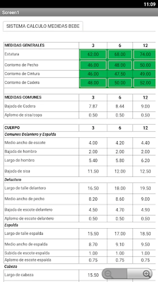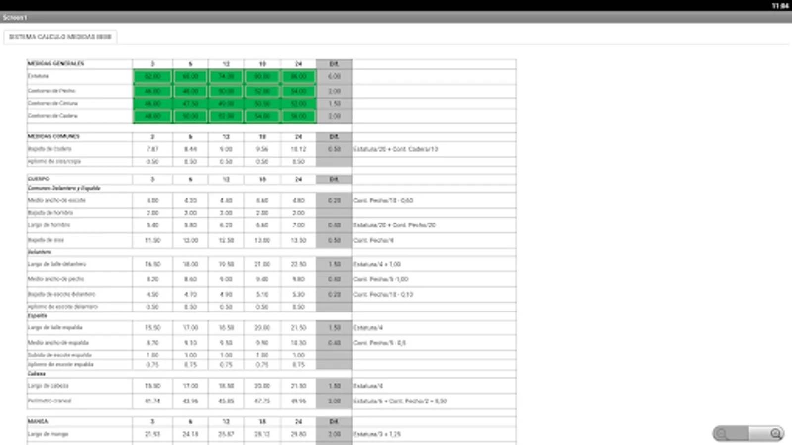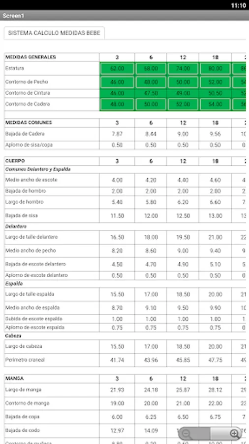 The system calculates all the measurements necessary to build the baby base patterns from four basic measurements that the user must always establish: height, chest, waist and hip contour.