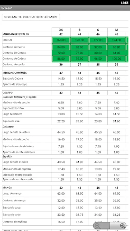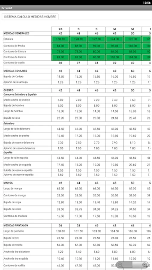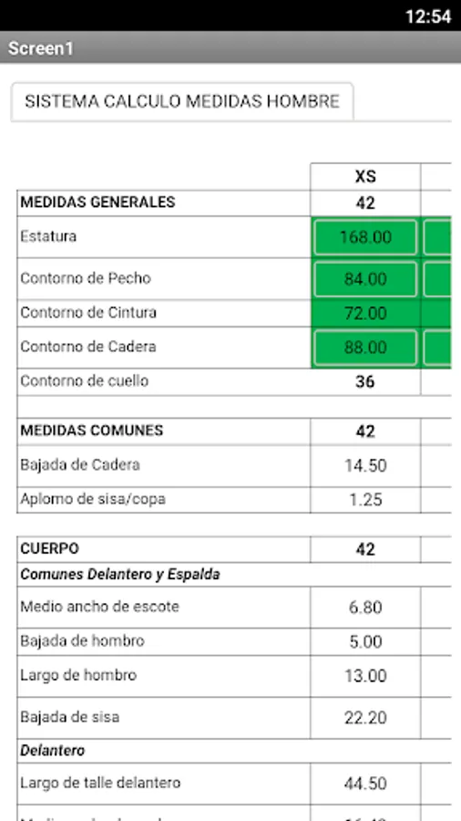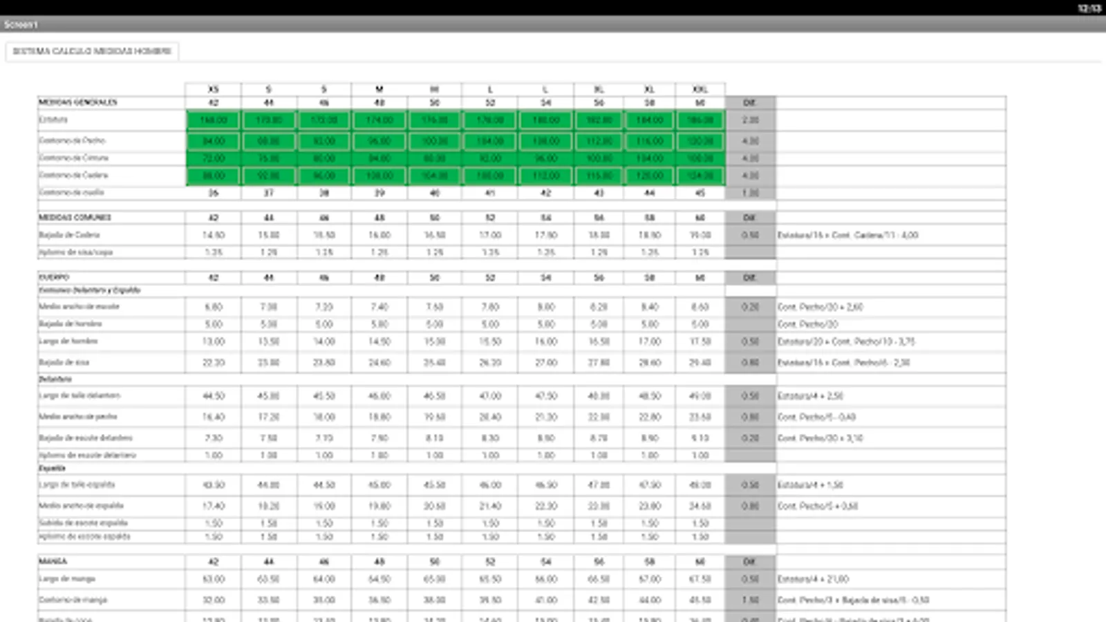 The system calculates all the measurements necessary to build the men's base patterns from four basic measurements that the user must always establish: height, chest, waist and hip contour.