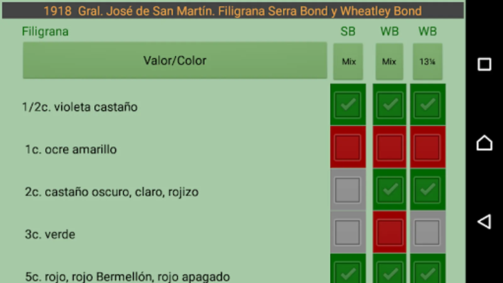This App will allow you to keep track of the missing stamps of these two Argentine series that were in force from 1917 to 1931, with all the variety of papers that the CEFILOZA online catalog specifies.