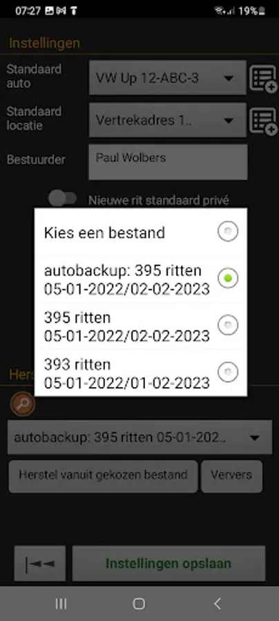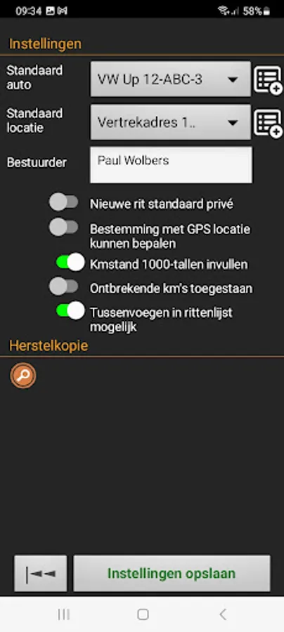 - Restoring data in the app is possible, e.g. when using a new phone. Your mileage registration will not be lost.