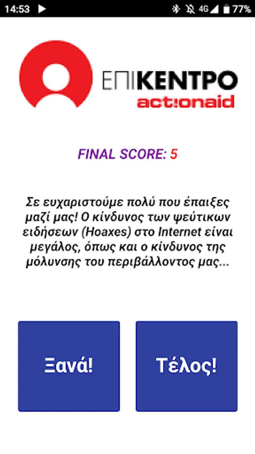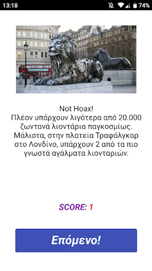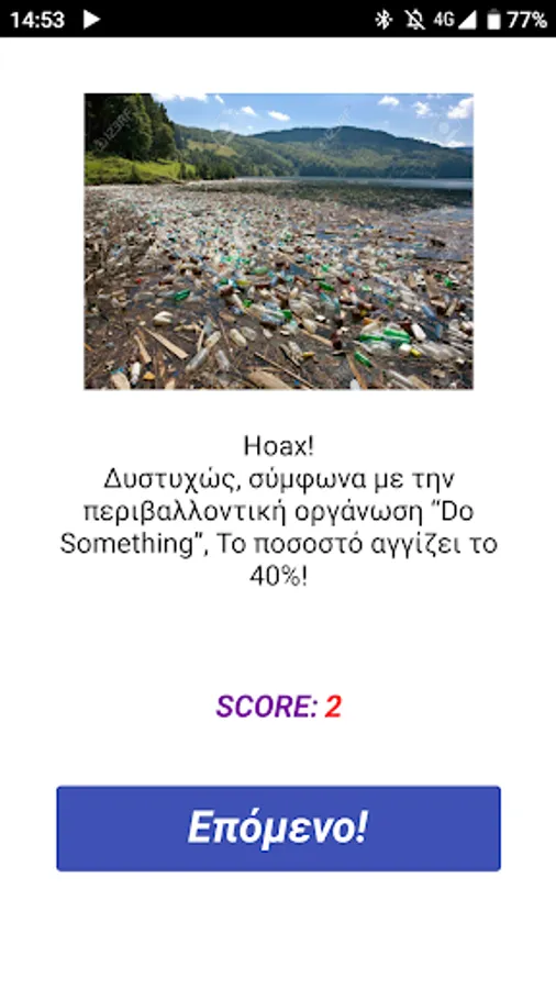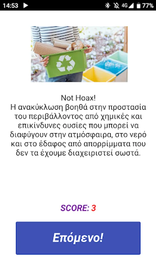 The player is asked to distinguish which of the news / facts he / she sees are Hoaxes, and which are real events. At the end of each question, he sees the reality and learns that knowing how to distinguish lies from the truth is as important as protecting the environment!
