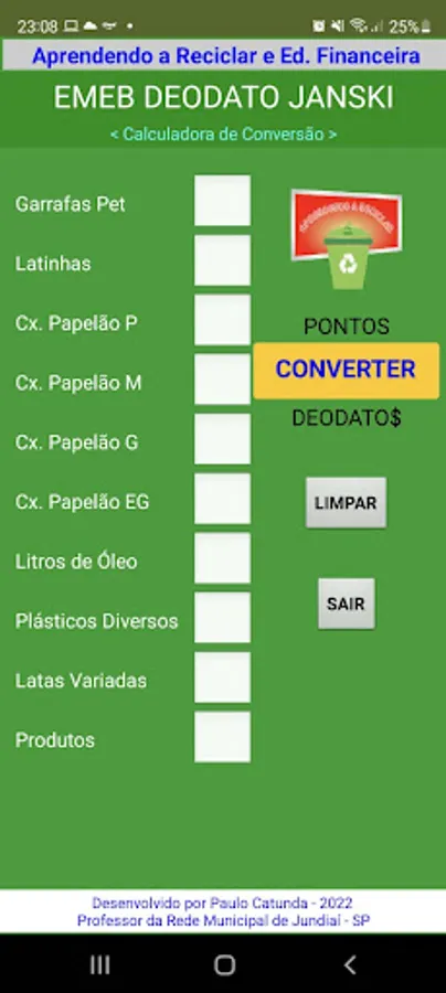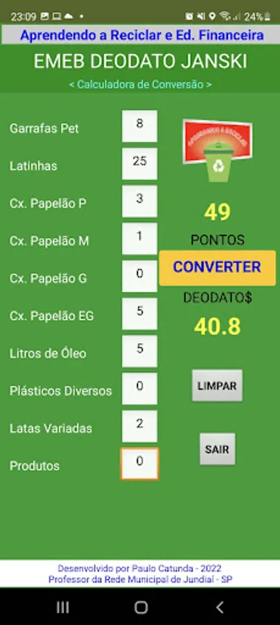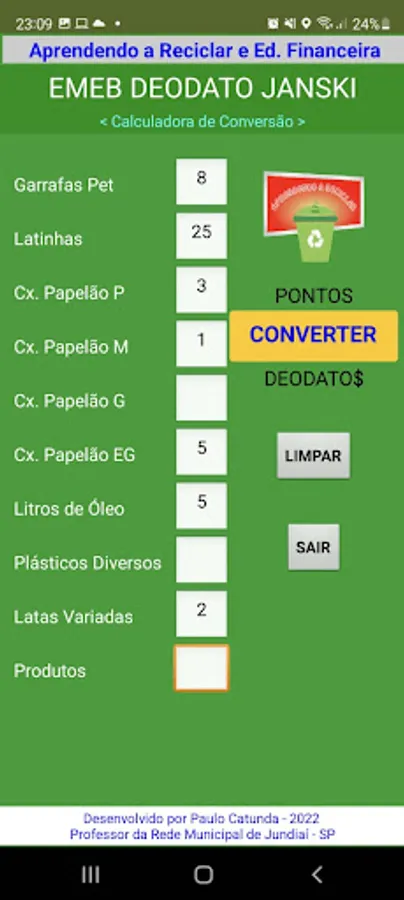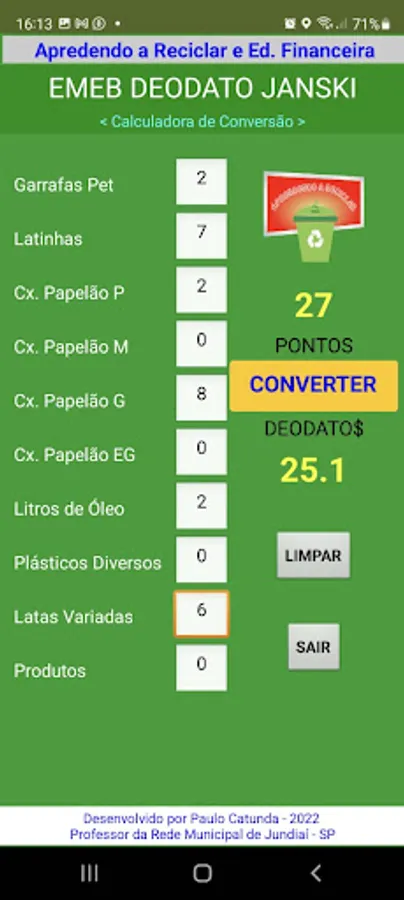 It is intended to alleviate the operational burden of teachers, as well as to value and contribute to the development of Environmental Education and Financial Education for students at the School Unit.
