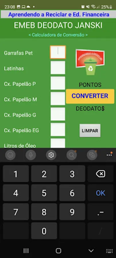 The App has the function of converting accumulated points resulting from the collection of recyclables into symbolically financial value.