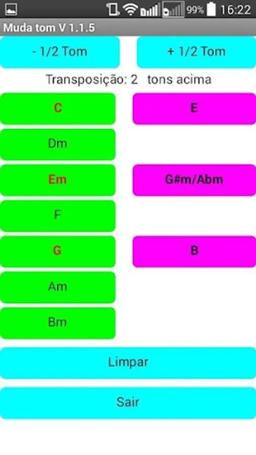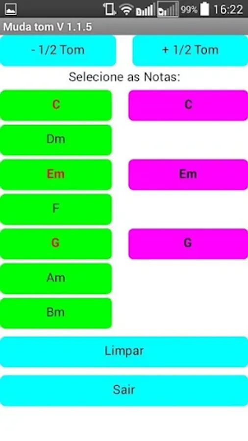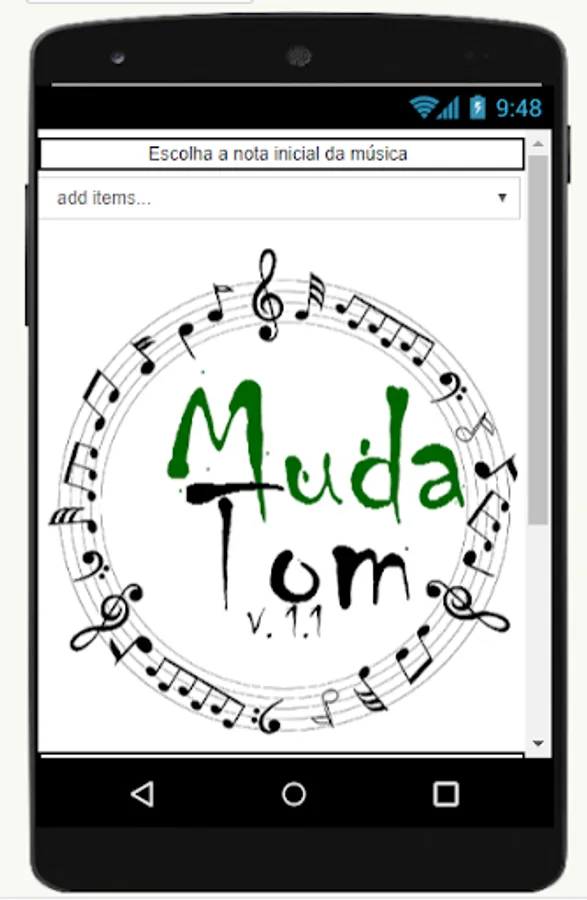With this application the musician can transpose the figures he wants from the choice of the starting note. After choosing the note, the buttons with the notes of the musical scales are generated, just select the notes you want to transpose and you can easily raise or lower the tone of the music. Very useful for music teachers, students etc.