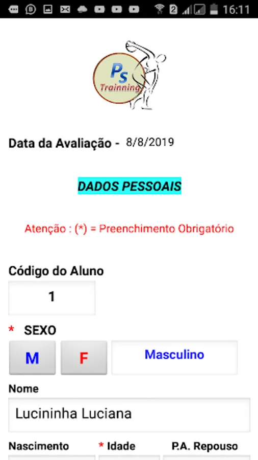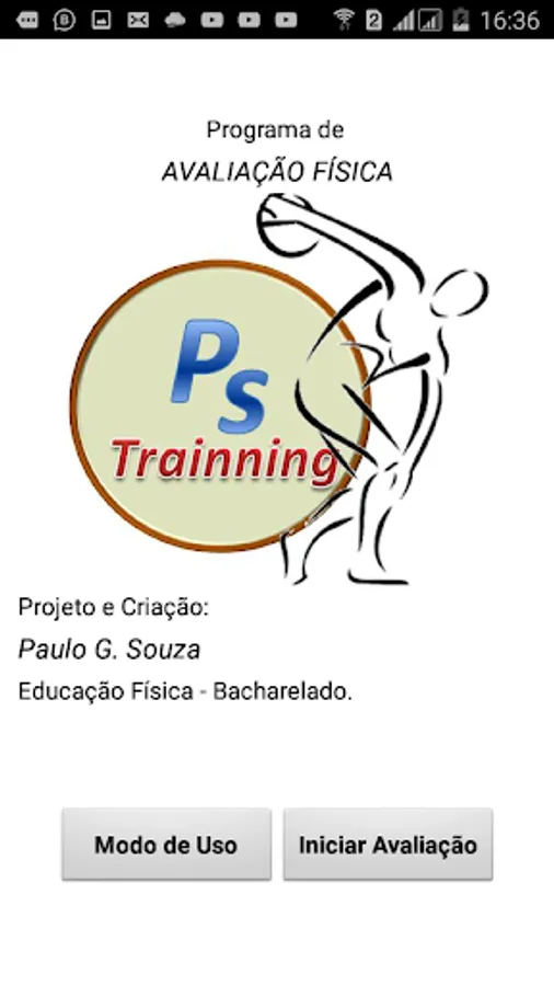 The PS Trainning App aims to organize and facilitate the Physical Assessment process, giving AUTONOMY for the Teacher / Personal to have at their disposal a COMPLETE program with simple maintenance fee in an UPDATED APP.