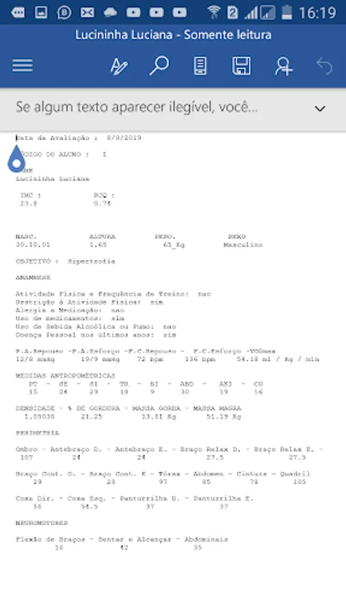 The evaluation data is saved in WORD in the DOCUMENTS folder of your phone or tablet, just by having the MICROSOFT WORD application, which is already installed in the factory on most phones.