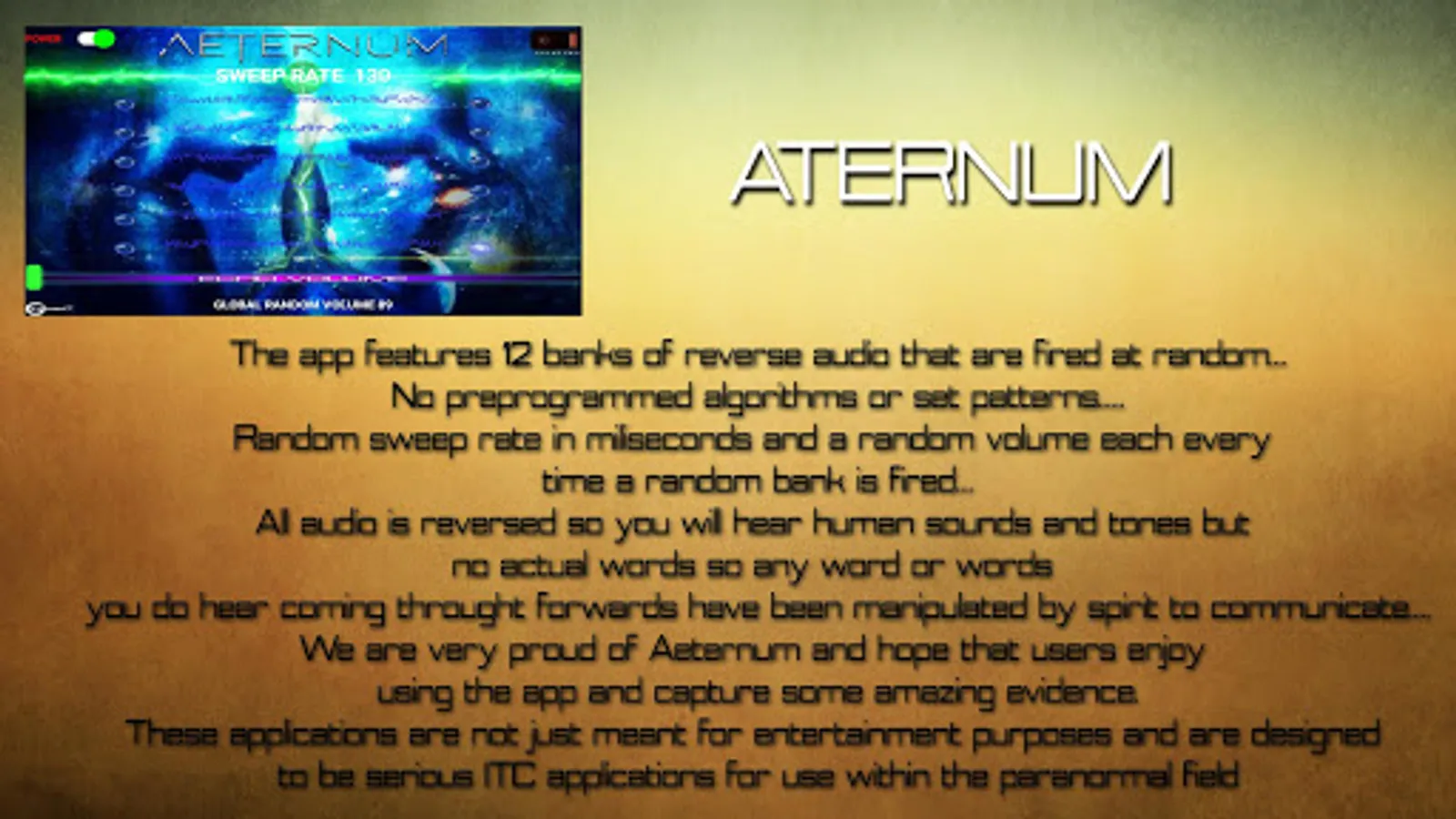 Our apps are designed to be used as a serious tool within the paranormal field and great care and attention has gone into making these applications to give the end user the best experience possible.