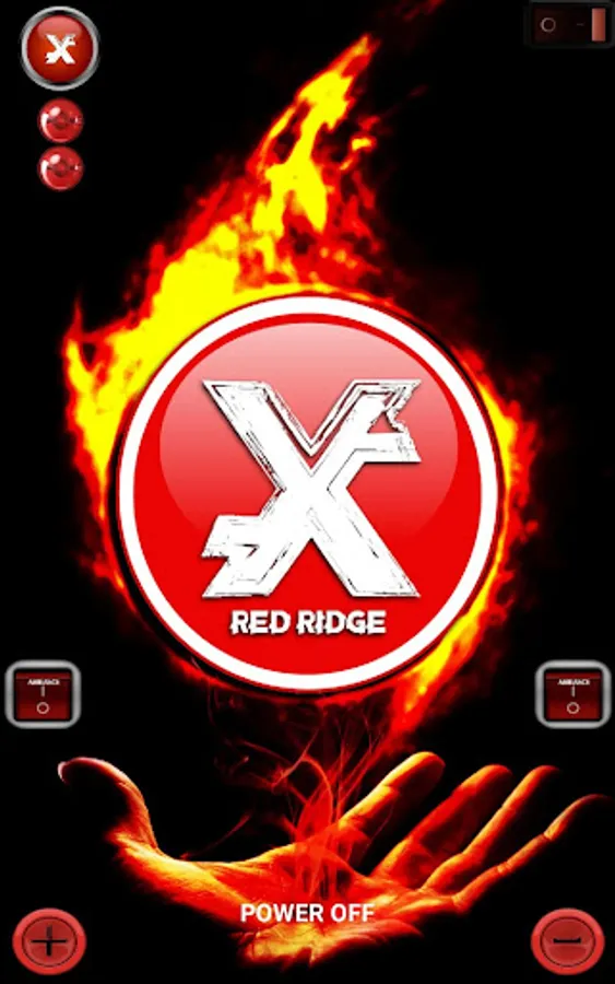 The Large red circular button with the X on the left is the on off for the actual ghost box part of the app.