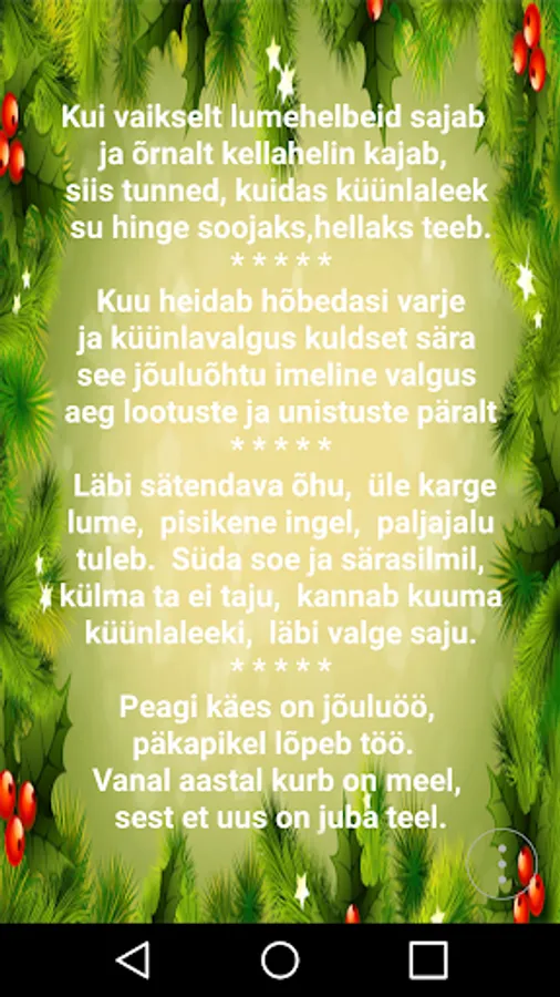 * Poems can be sent to a friend, or Santa Claus, using SMS, Hangouts, Google+, e-mail, or the like. It is also possible to store phone poem annotations.