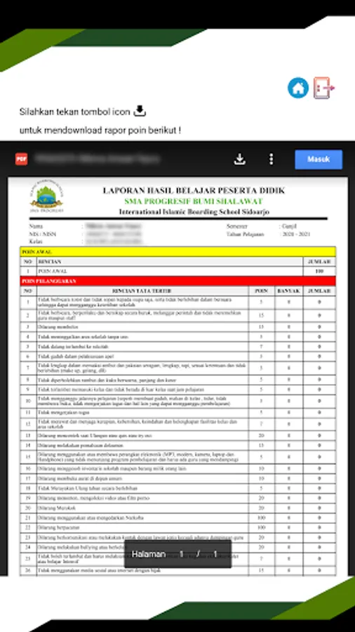 This application can be used by the student guardians of the Bumi Shalawat Progressive School to monitor the academic development of the Bumi Shalawat Progressive School Santri, including: