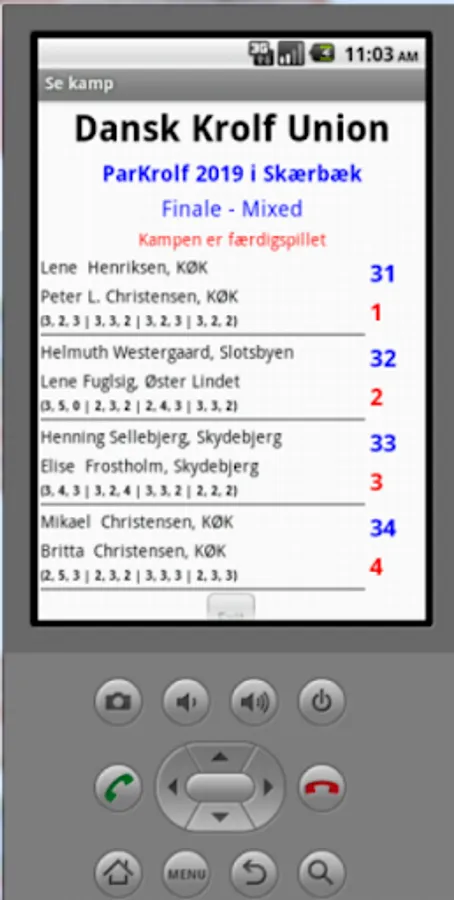 Here you can follow the position in the finals as they take place, see who is registered for the event and statistics on the individual players.