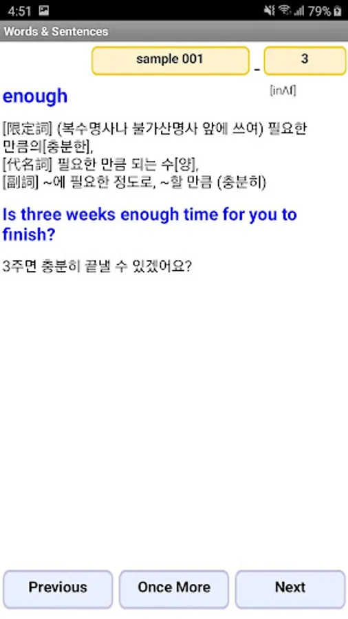 단어 및 문장을 TTS로 발음하여 주며, 텍스트를 보여준다.