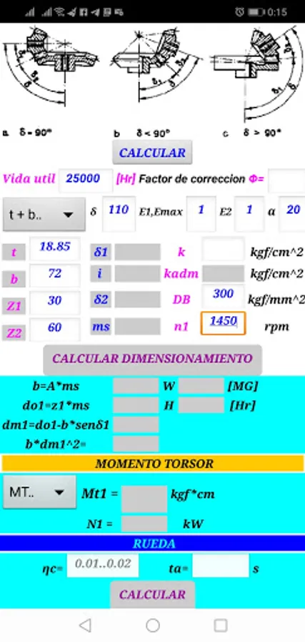 Sizing Gears is a practical and simple App to identify important parameters regarding the sizing of helical, bevel and screw gears.