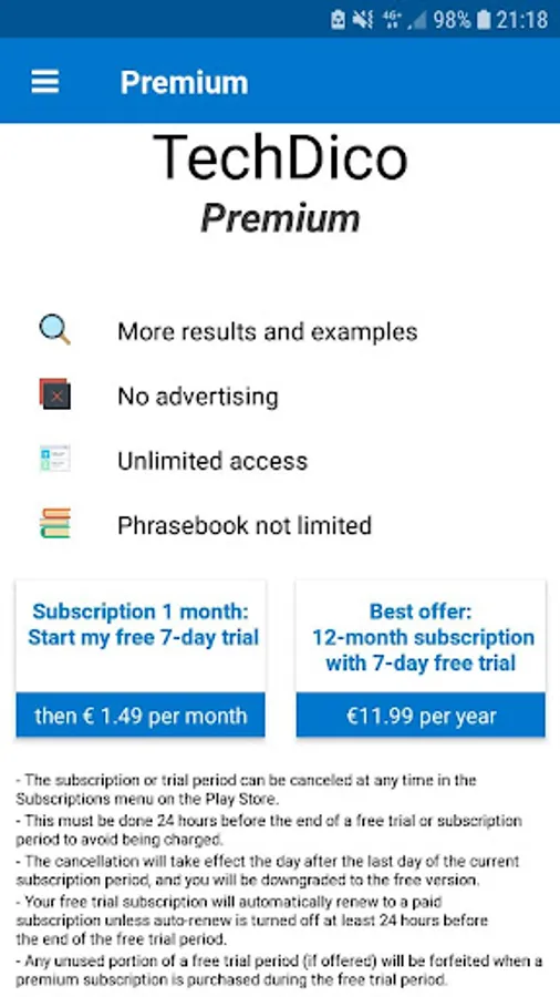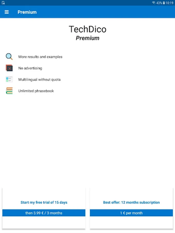 An internet data connection is required to use TechDico