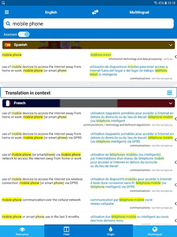 In addition to the bilingual mode, take advantage of multilingual mode to get translations in multiple languages in one click.
