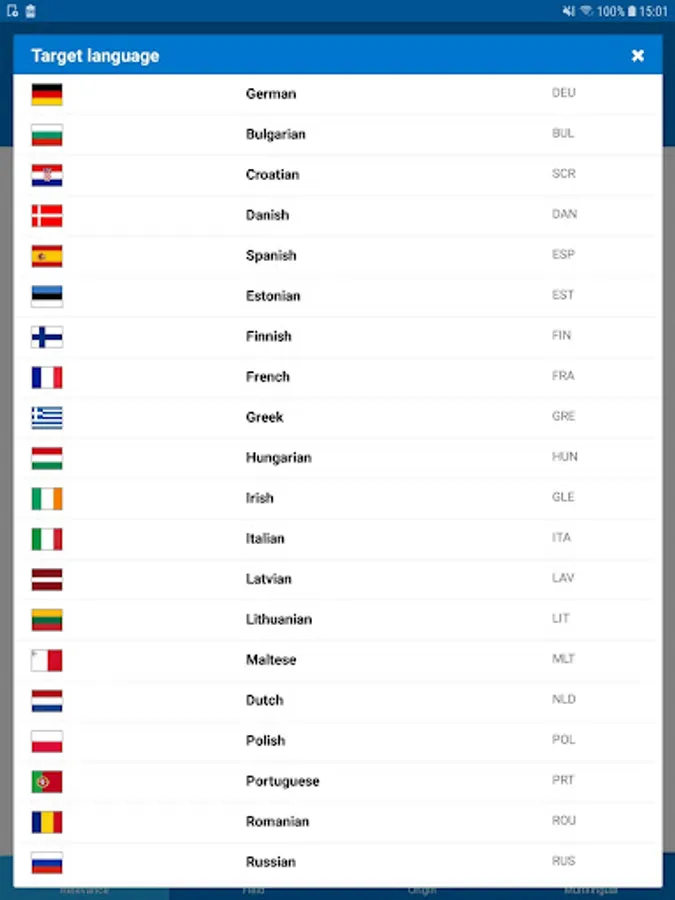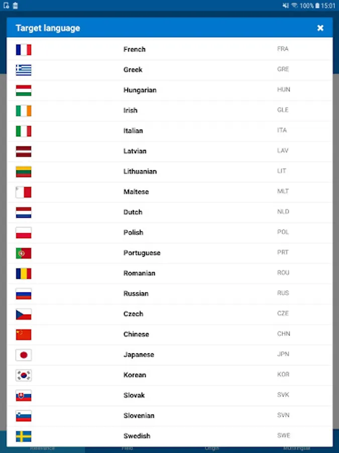 English, French, Spanish, German, Portuguese, Italian, Japanese, Korean, Chinese, Russian, Romanian, Dutch, Polish, Greek, Danish, Swedish, Finnish, Irish, Maltese, Slovenian, Lithuanian, Estonian, Slovak, Hungarian, Latvian, Bulgarian, Czech, Croatian.