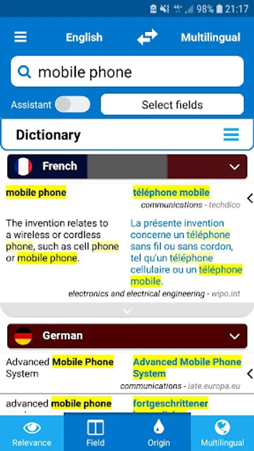 Technical dictionary & translation in 28 languages (560 languages direction):