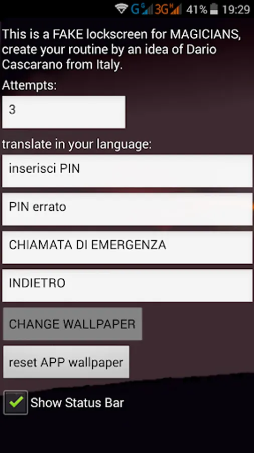 sl stands for screenlock, thanks to an idea by Dario Cascarano, here is a false lock screen to create your magical effects. Scroll the top of the screen for the setting.