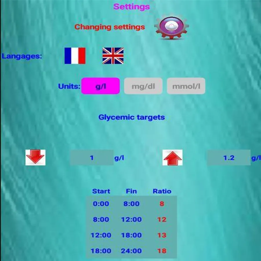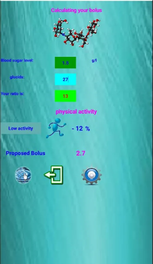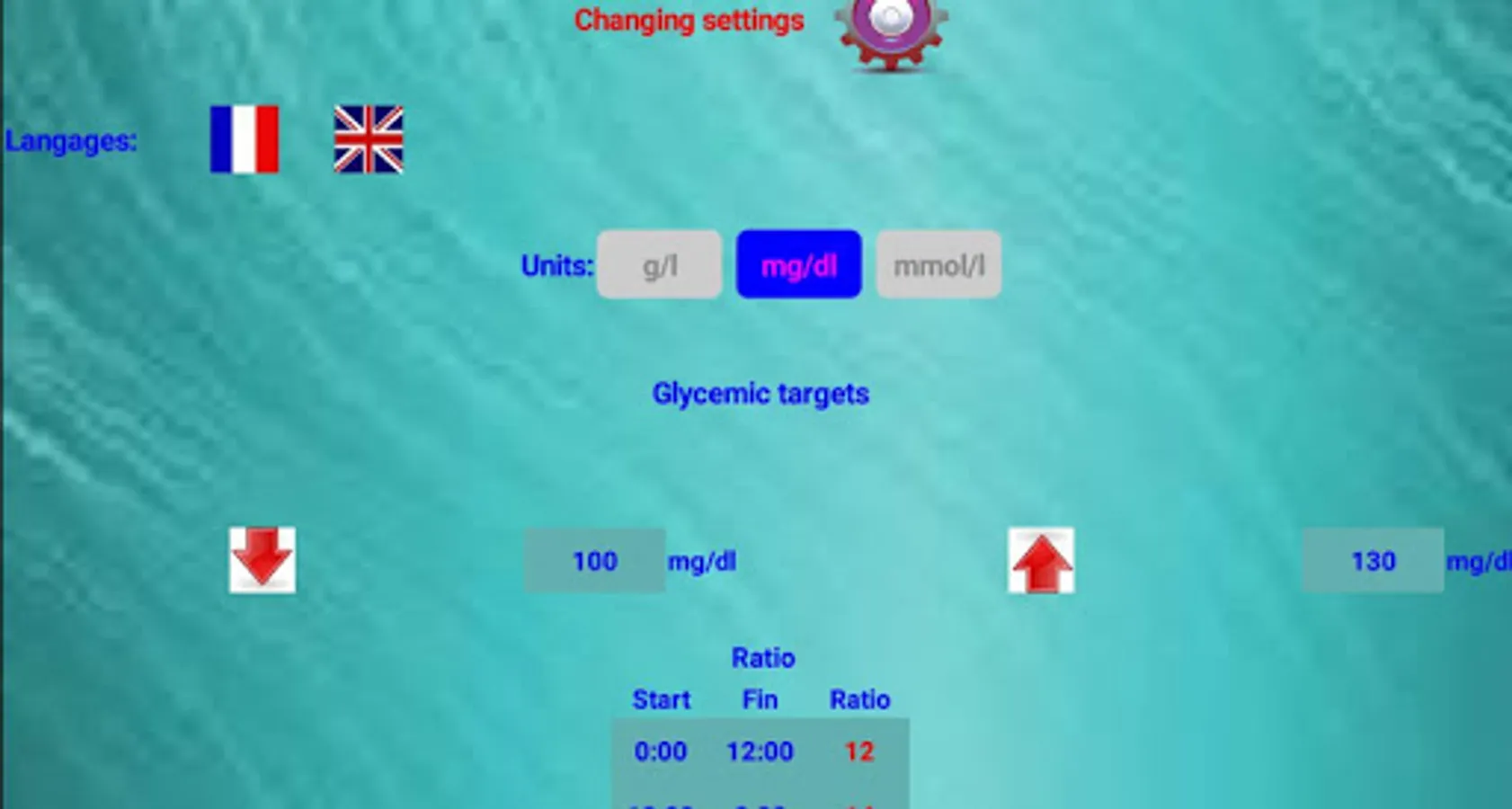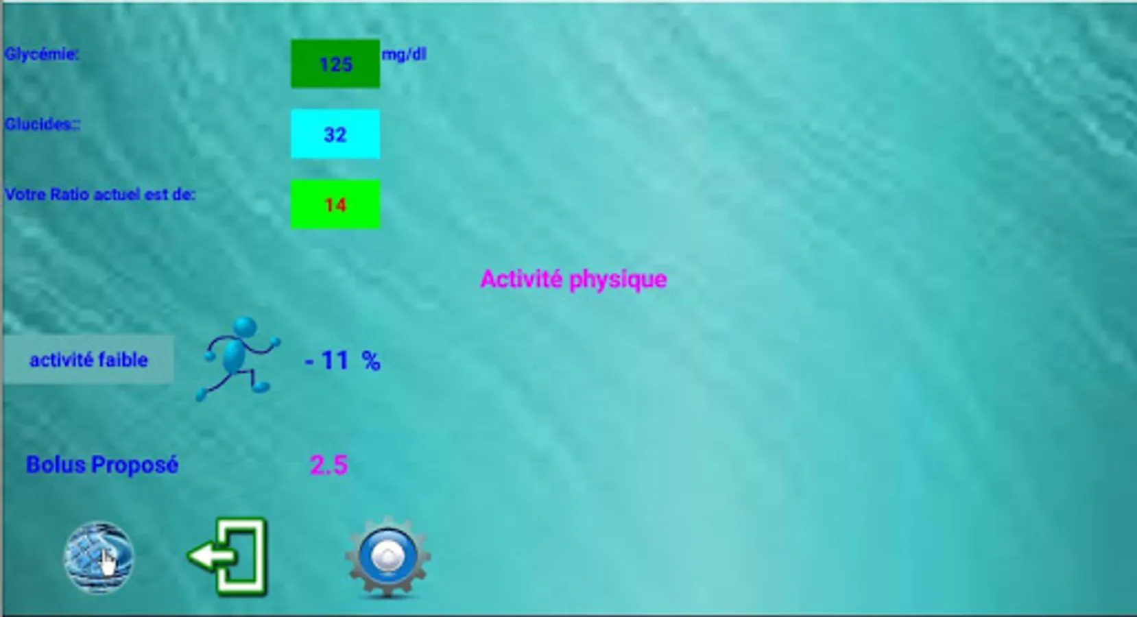 When using for the first time, fill in your glucose targets, your Ratio(s), your insulin sensitivity. You have three additional parameters to reduce your bolus by a certain percentage during physical activity after the meal.