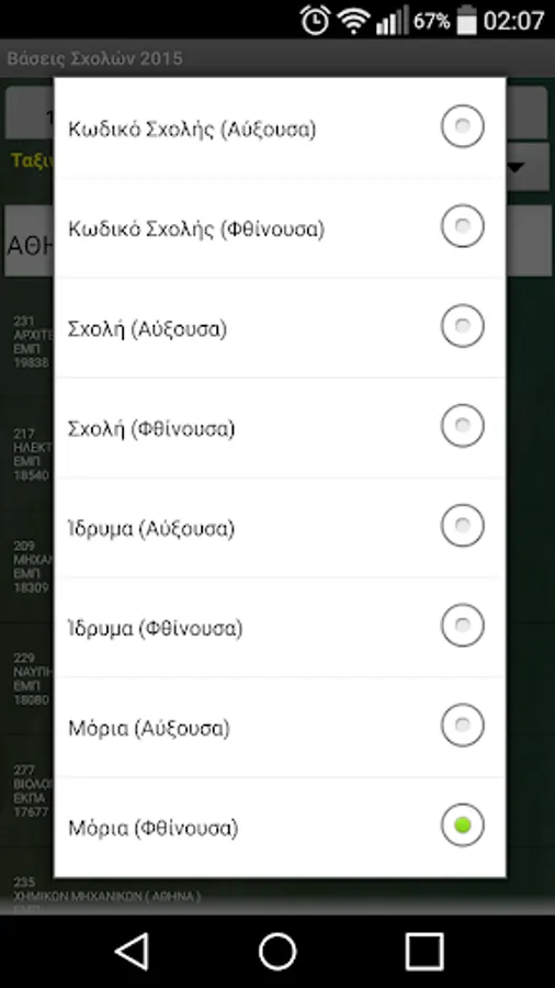 2) shows which schools the candidate goes to based on the points he / she obtained.