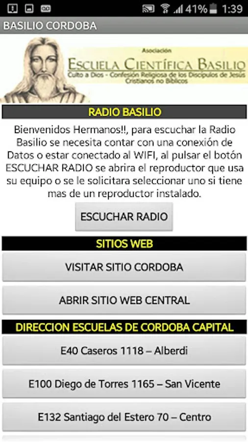 Application to listen to Radio Basilio (Requires data connection or WIFI to work), see the locations of the different schools and browse the websites of the region and the main AECB, listen to the Spiritual Knowledge classes and see the news .