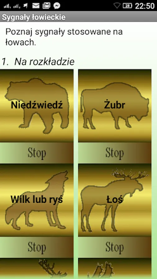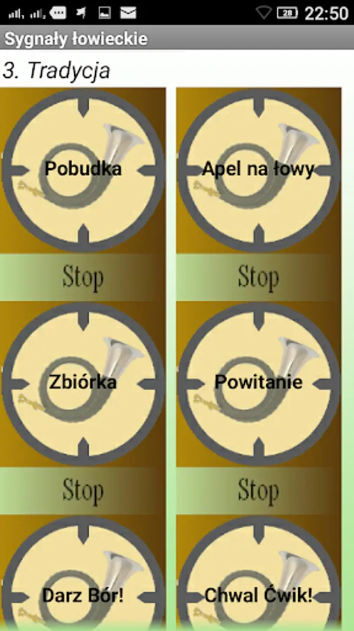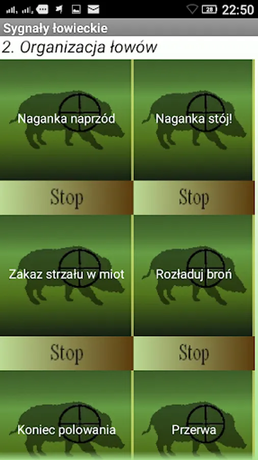 The signals used for hunting hunting and hunting during the ceremony. The signals were divided into three groups entitled: