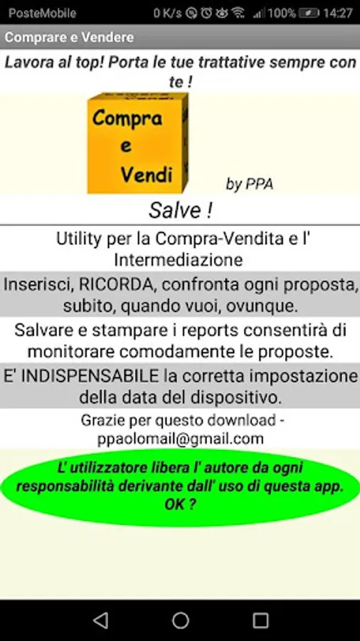 The application has been used personally for 6 years, with great satisfaction and results: having reached retirement, the author makes it available to the people of the Sellers, who are the real protagonists of the economy.