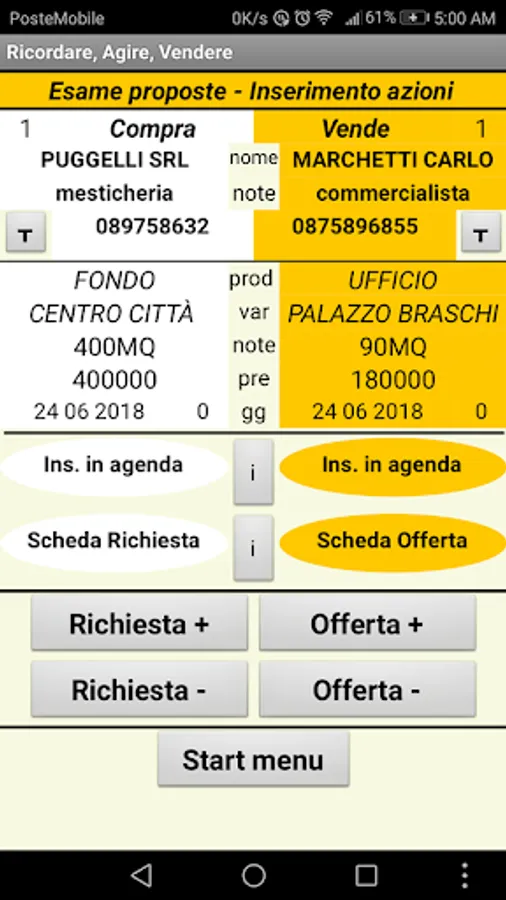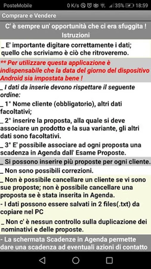 The application allows you to record at any time each proposal, both offer and request, and always have them in your device. A special screen allows you to compare offers with requests, so as to examine all the possibilities of doing business. It is possible to save 2 reports in txt format, proposal detail and agenda detail (in order of registration and not the expiry order) in the device memory, which can then be printed for a more convenient examination.