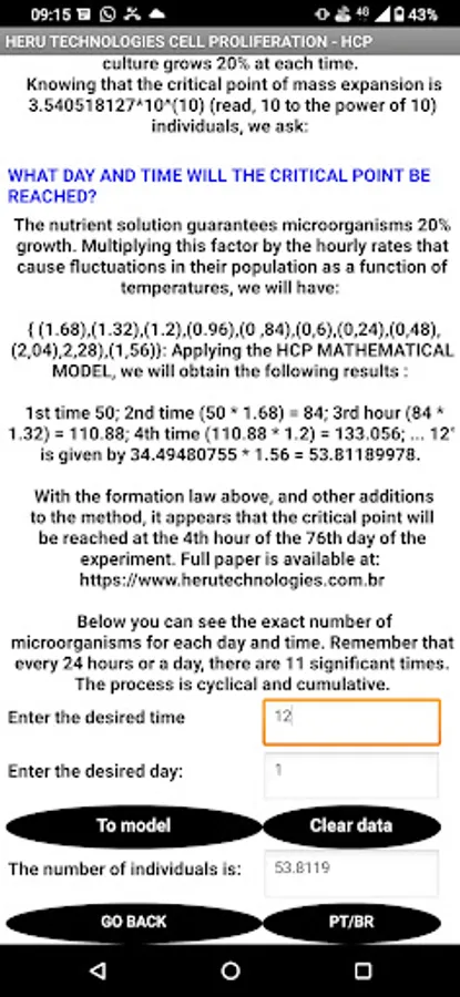Cell proliferation model - HCP is a presentation of an authorial mathematical model that measures cell proliferation. Users will be able to measure the expansion of a colony of microorganisms during an experiment. Available in Portuguese and English.