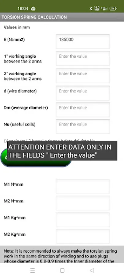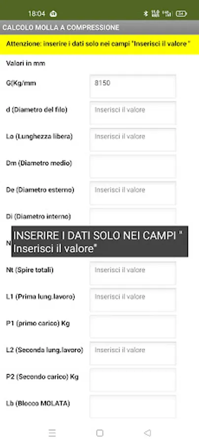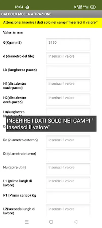 By entering a few simple parameters, the app will do everything by itself and you will be able to know the K of the spring, the various lengths, the number of turns, the lengths, the block and grinding dimensions.