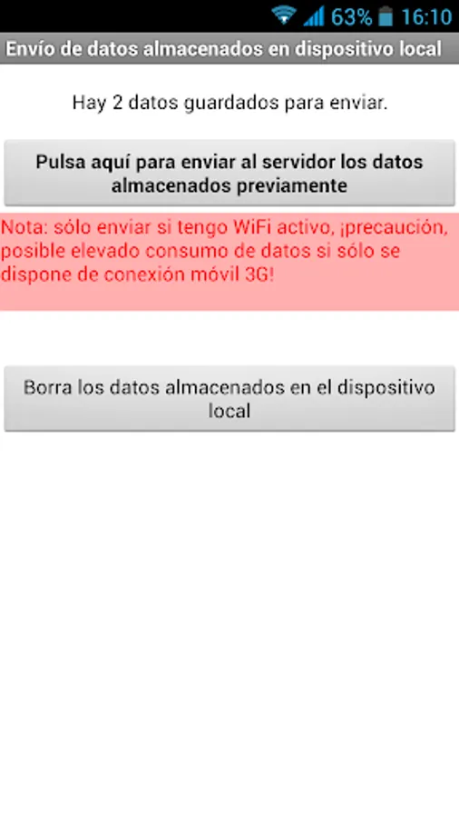 Sending can be done immediately (online) or deferred (offline) when you do not want to use it or do not have an Internet connection at the place where the data is collected. In such a case, once under a suitable connection (Wi-Fi) all the collected data can be sent at once.