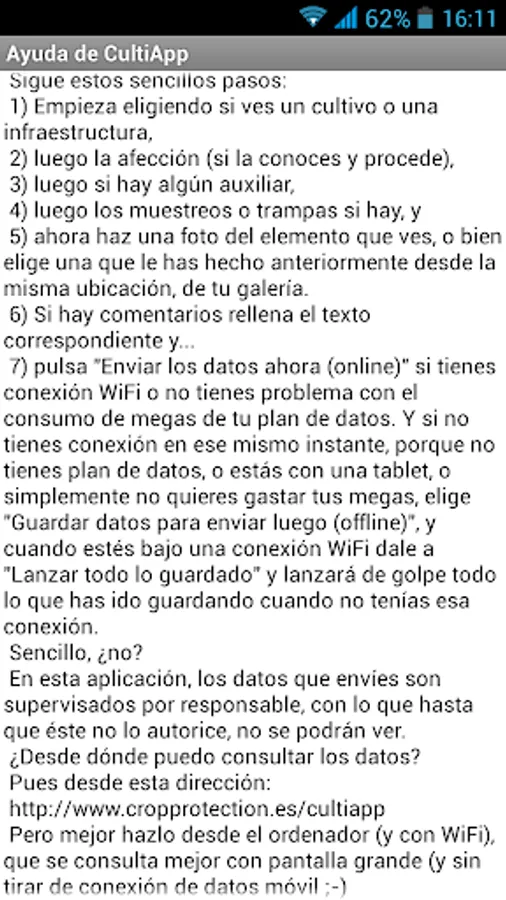 Once the contents have been uploaded to the server, they can be consulted immediately on the web http://www.cropprotection.es/cultiapp