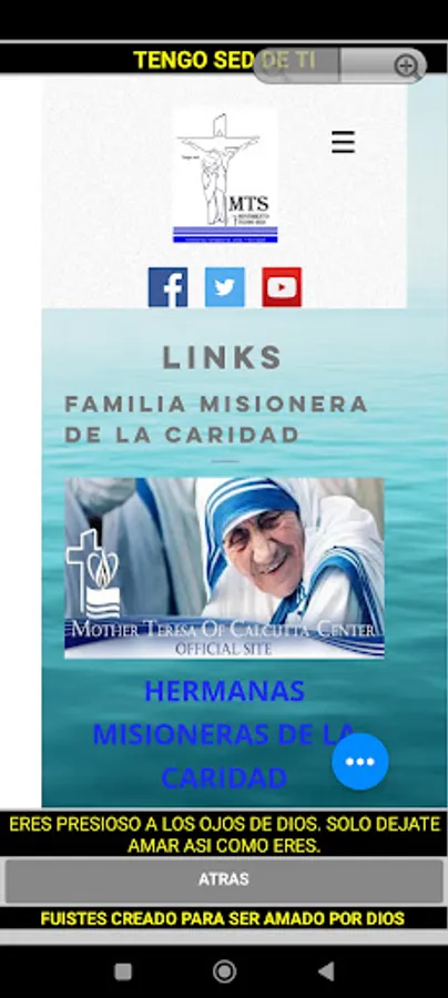 we are all thirsty, thirsty for happiness, for the infinite. Only Jesus can quench that thirst. The world offers us many things, but everything leaves us emptier in the end. The spirituality and charism of Saint Teresa of Calcutta can show you the way to the Encounter with Christ. He is thirsty for you, for loving you, for you to let yourself be loved. He desires, longs for a personal relationship with you.