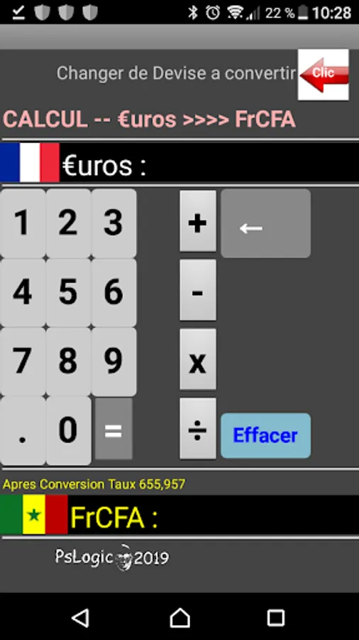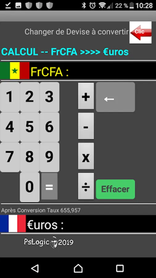 Calculate and convert currencies in € uros to CFA Francs or conversely