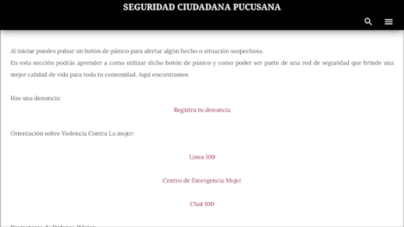 App created as a panic button and basic security information such as making a report, the channels to use and against violence against women